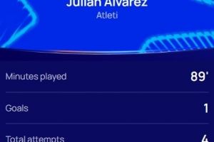 本场比赛阿尔瓦雷斯1粒进球2次助攻,赛后他也当选欧冠官方评选出的本场最佳球员。