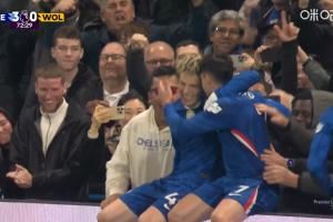 体育资讯11月09日讯 英超第11轮,切尔西对阵狼队。73分钟,加纳乔带球奔袭传中,内托轻松推射破门。内托破门后找加纳乔一起再现经典坐广告牌庆祝。